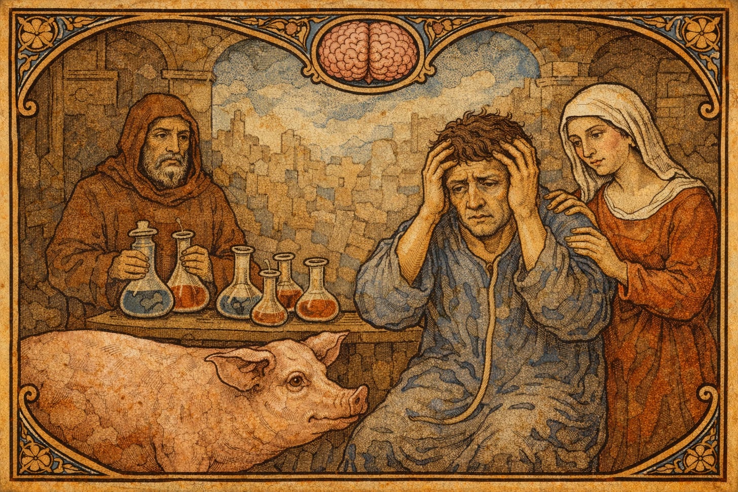 I met Adrian in a niche online community dedicated to cerebrolysin– a mix of peptides distilled from porcine brain tissue. In a thread simply titled “Cerebrolysin helped depression” the 37 year old personal trainer shared his story. “I was experiencing a sudden onset of severe anxiety and depression. I was seriously suicidal for the first time in forever, and I was ready to completely give up on my life after 2-3 months like this.” Cerebrolysin is prescribed in the former Soviet bloc and Asia as a treatment for dementia, stroke and TBI. It never gained approval in the US, but online communities have resurrected it as a neurological panacea. Modern biohackers see broad applications— clearing brain fog, improving memory, even curing depression. In Georgia, where Adrian lives, access to low cost clinics could take months— and he was already at rock bottom. I reached out to Adrian to understand how he settled on using a decades-old oddity of a drug.